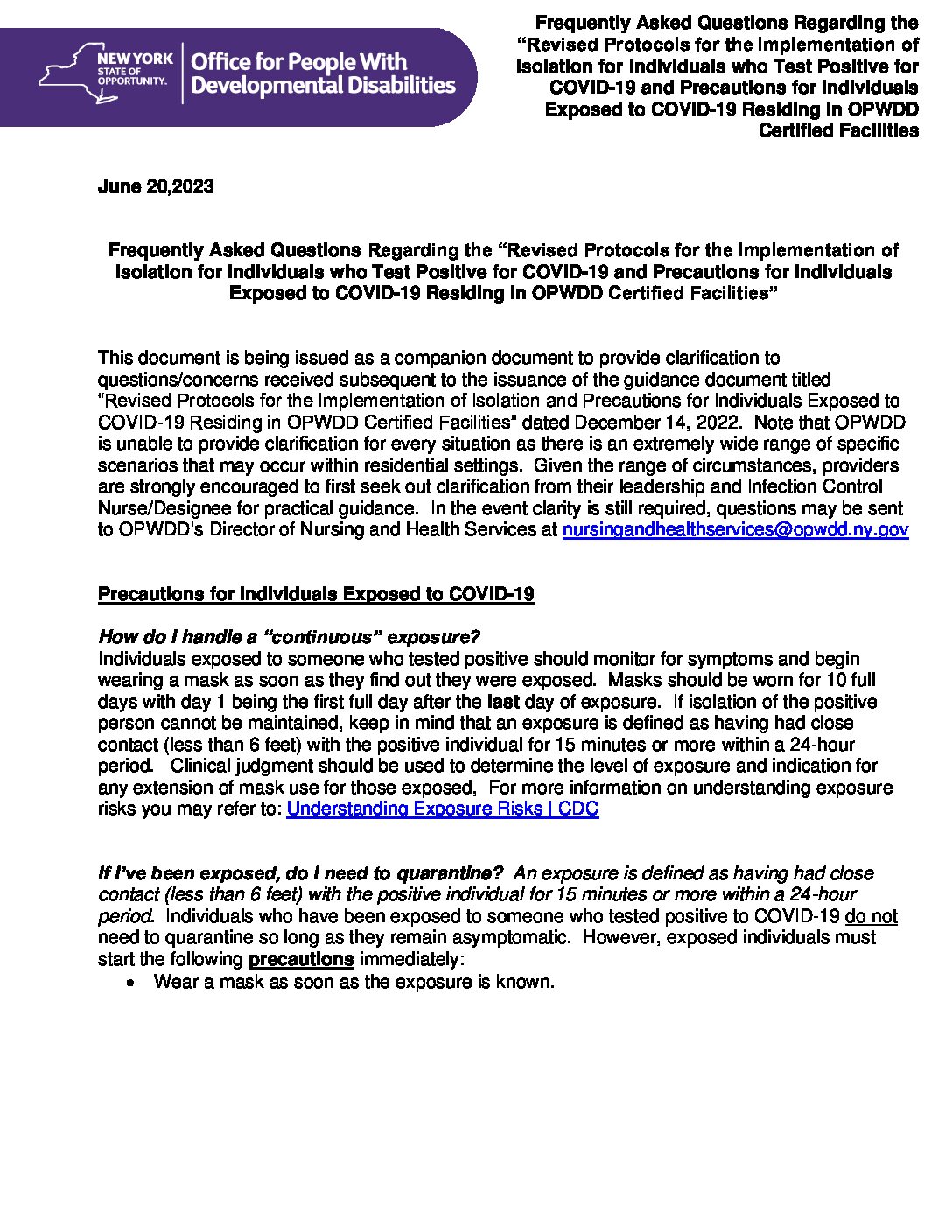 FAQ Revised Protocols For The Implementation Of Isolation And Precautions Guidance 2023.06.20