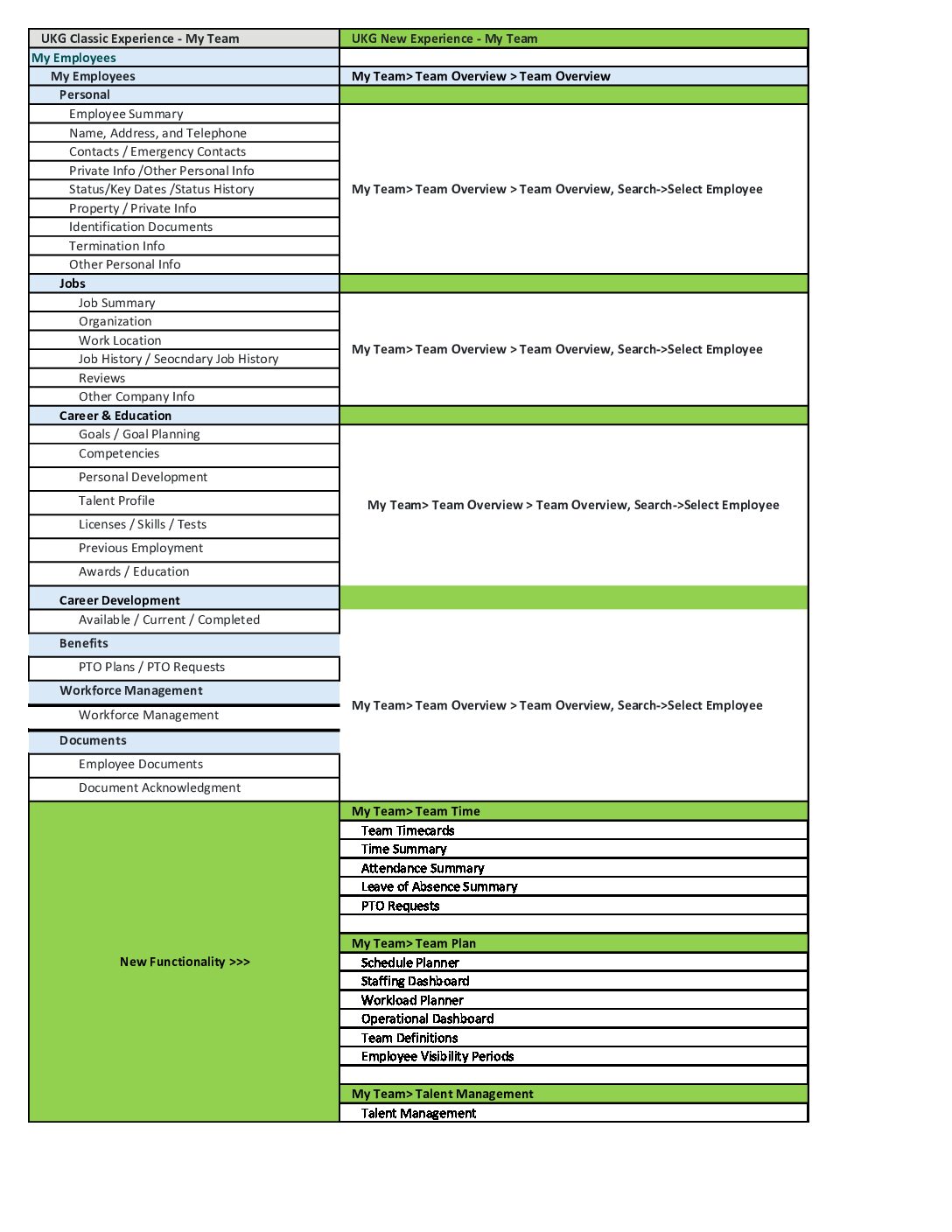 UKG New Experience Menu – My Team