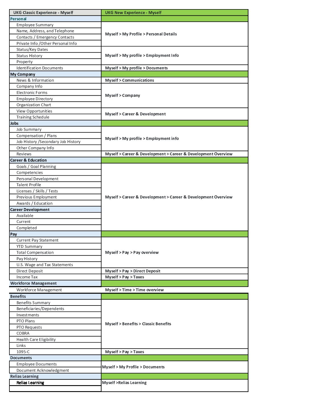 UKG New Experience Menu – Myself